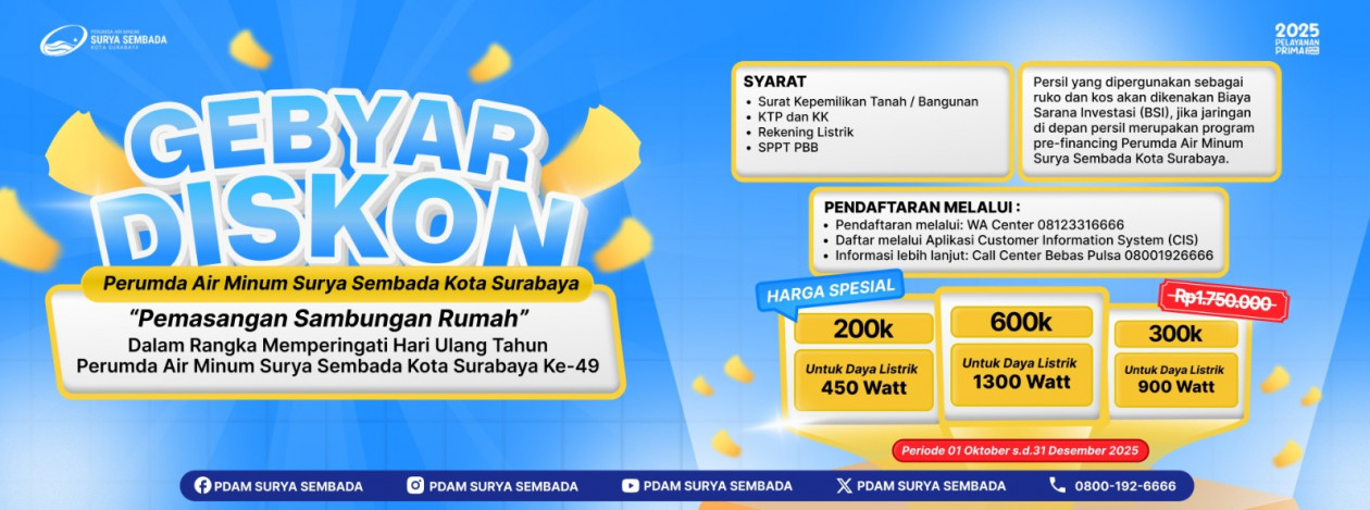 Gebyar Diskon Pemasangan Sambungan Rumah dalam Rangka HUT ke-49 Perumda Air Minum Surya Sembada